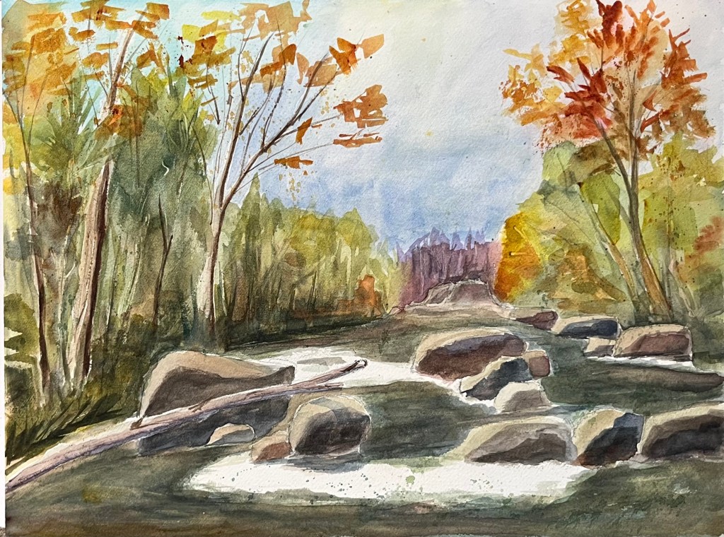 For those of you who are familiar with my work, the three paintings below are going to look a little different. This past week I had the express pleasure of working with a watercolor artist whose approach is vastly different from my own. This artist challenged me to paint more mindfully, but less carefully. Go in with a plan, but get that paint on the paper–Wham, Blam. This helps to create a fresher, brighter, and more interesting painting. I was having a tough time with that, but by the end, I think I like the pieces I was able to create!
