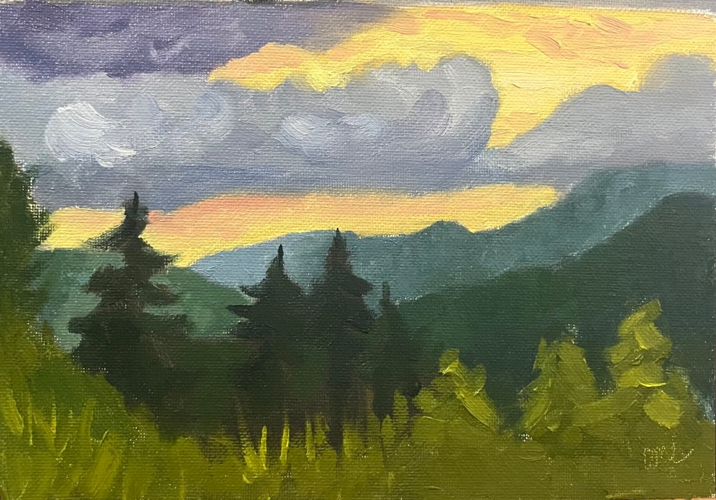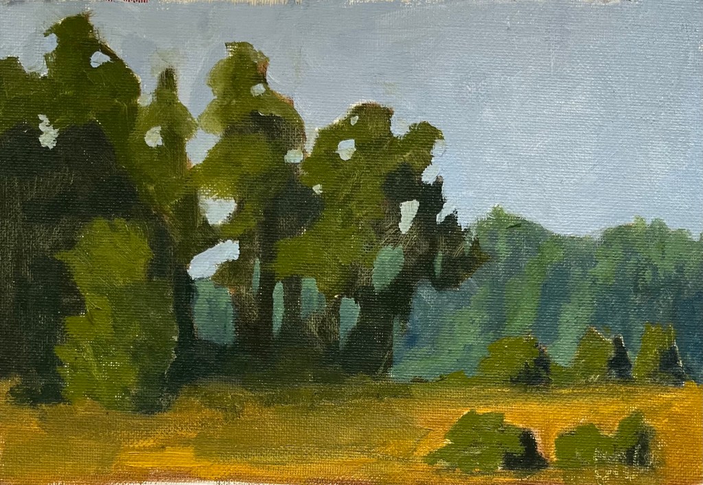 If I ever take vacation, it’s almost always to spend some time at an art workshop. I show up with big totes of supplies in tow while quietly singing “Back in the Saddle Again” which, for reasons unknown, has become my workshop song. March was oil painting with my friend Sara Beth Fair. We focused on getting back to the basics of shapes and composition, value, and finally color. Sara’s workshops are no joke, and she pushes us hard. What I love about her workshops is not only that I go home totally wiped, lugging 10 wet paintings, I also carry with me some wisdom for the next time I’m at the easel. Sara asks herself a question before she starts every piece: What do I love about what I’m going to paint? When you’ve got your basics and focus on what brings you joy, you can’t go wrong.